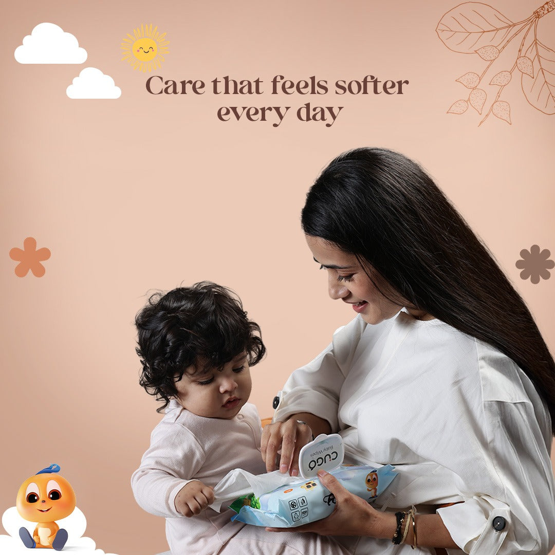 Indulge in the gentle care of Cugo's Baby Wipes, crafted with 99.5% water. These wipes are a pure oasis for delicate skin, ensuring a thorough cleanse without any harsh chemicals. Enriched with Australian Kakadu Plum Extract. It is a superfruit native to northern Australia, celebrated as the world’s richest natural source of Vitamin C. Known for its powerful antioxidant and soothing properties, it helps protect and nourish delicate baby skin while supporting natural hydration and glow.